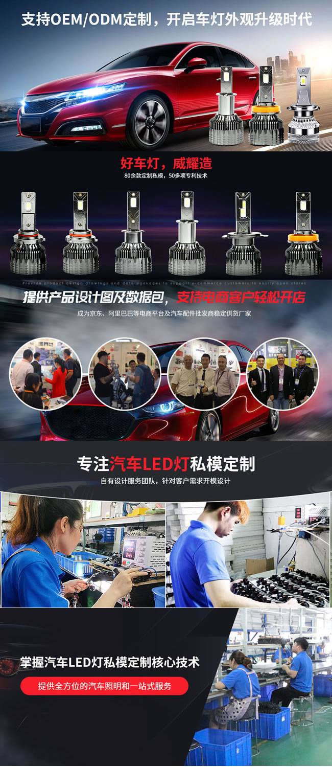 广州市威耀汽车配件有限公司成立于2014年,一直专注于研发、生产、推广高品质的绿色节能汽车LED大灯产品,为车主提供全方位的照明解决方案和服务,是国内综合竞争实力较强的照明品牌之一。公司拥有广州白云区大型生产基地,具有规模化的生产实力。工厂产品线20条、员工400多人,年生产能力800万套+,渠道网点覆盖全国各省、市、县、乡镇及农村市场,公司60%左右的产品出口到世界120多个国家和地区。