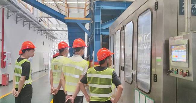 在华南大区经理李洪颖的讲解下,汕头汽车后市场的同仁深入地探访了美合科技的生产车间。产品生产线从原材料来料取样检验、包材来料抽样,到生产前配方审核、IPQC在线定时抽检、IPQC末件检查放行,最后成品入库交接检查等,前后需要经过八大工序全流程检查检验的品质管控。