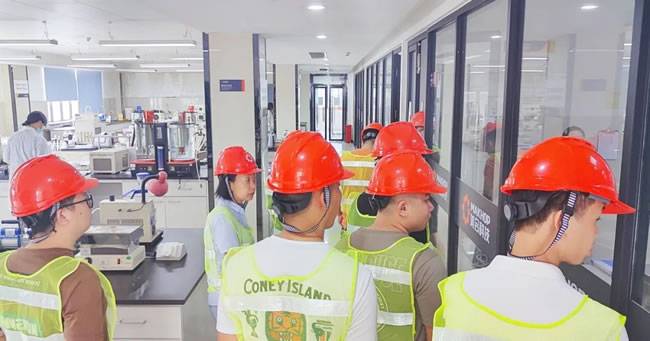 随着步伐的深入,我们来到了美合科技研发中心,研发中心分别设有产品配方研发室、高温实验室、低温实验室、精密仪器室和通用分析实验室等科室,总建筑面积2000平方米,总投资超过2000万元,并获得了CNAS(中国合格评定国家认可委员会)双向认证。研发中心配备了60多台国内外精密仪器和尖端检测设备,具备密度、运动粘度、TBN/TAN、CCS、MRV、HTHS、ICP等77项性能和指标检测能力,覆盖了润滑油大部分常规理化指标、模拟性能测试,有力保障了成品油各项性能和指标检测数据的准确和精确。