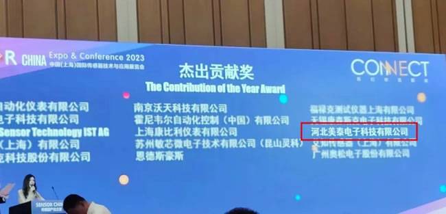 2023年9月13日,SENSOR CHINA中国(上海)国际传感器技术与应用展览会在上海跨国采购中心开幕,美泰公司携多款MEMS传感器参展,在同期举办的中国传感器产业之夜颁奖典礼上,美泰公司凭借领先的MEMS汽车传感器斩获中国传感器产业 “杰出贡献奖”。