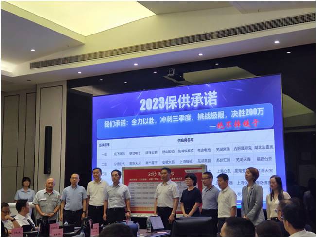 我们注重合作伙伴关系的长期稳定与发展。与奇瑞汽车的合作不仅仅是短暂的交易,更是建立在共同发展和共同利益基础之上的战略合作。2023年是奇瑞汽车年销量迅猛增长的一年,2023年目标冲刺年销量200万台,作为奇瑞汽车的战略合作伙伴,我们将全力以赴地做好保供,为此,许永华总经理还亲自与奇瑞汽车签订了保供承诺书,同时我们也将与奇瑞汽车继续保持良好的沟通与合作,在合作中实现共赢。