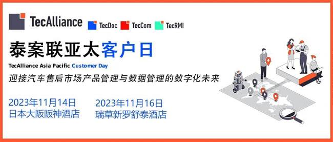 不容错过的其他主题还包括我们的数据及其在各种实际情况下的多用途应用、针对本地市场的著名 TecDoc目录解决方案,以及产品管理分析等解决方案,以便更轻松地提高您的市场竞争力。我们经验丰富的专家还将为您讲解覆盖售后市场订购各个阶段的 TecCom解决方案,让您充分了解流程标准化和自动化的优势。