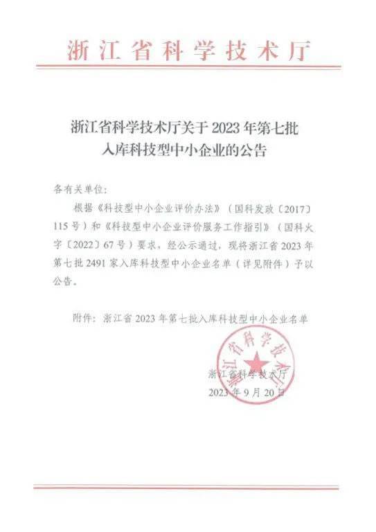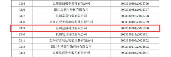 近日,根据《科技部财政部国家税务总局关于印发《科技型中小企业评价办法》的通知》和《科技型中小企业评价服务工作指引》有关规定,浙江省科技厅发布了全省2023年第七批入库国家级科技型中小企业名单,温州冠盛科技有限公司通过评定荣获“国家级科技型中小企业”称号。